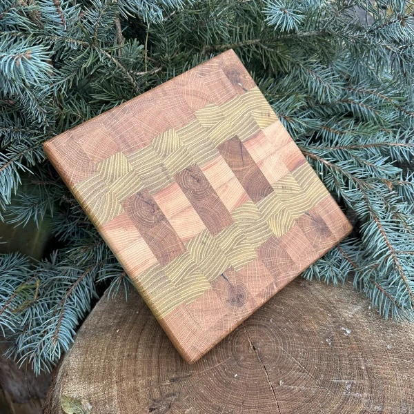Toto čtvercové prkénko je vyrobené z akátového, dubového a jasanového dřeva, které je známé svou krásnou kresbou a výraznými odstíny – od světlých medových tónů až po tmavší pruhy. Díky tomu vypadá každé prkénko trochu jinak a působí jako přírodní designový doplněk.