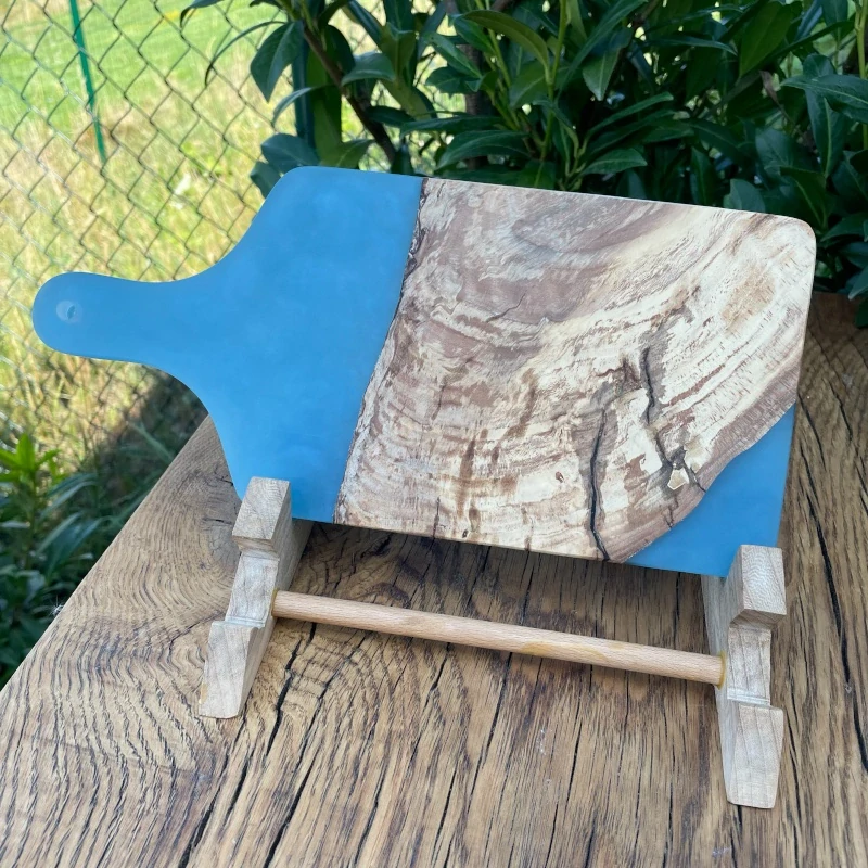 - kombinace bukového dřeva a perleťově modré pryskyřice